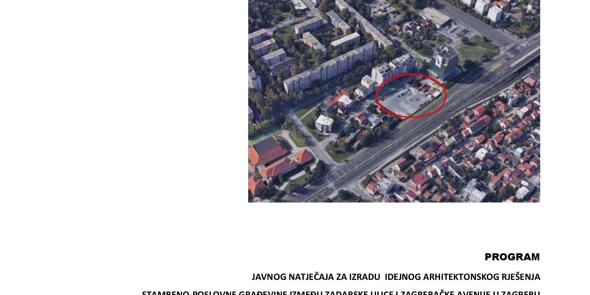 Natječaj za izradu idejnog arhitektonskog rješenja stambeno-poslovne građevine između Zadarske ulice i Zagrebačke avenije