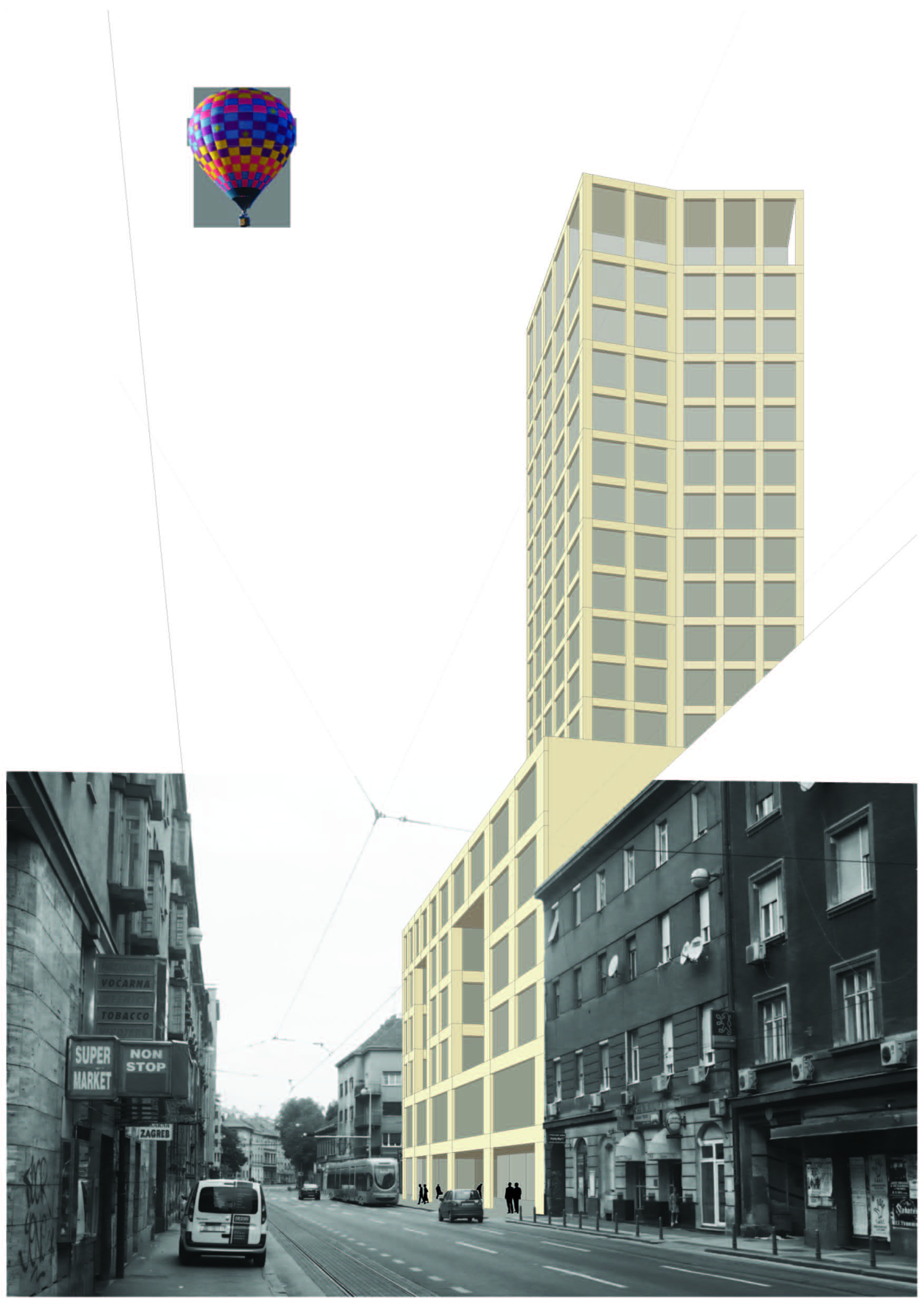 Posebno je afirmativno vrednovan smještaj visokog, stambenog dijela građevine u unutrašnjost bloka, čime se minimalno narušava karakter Ilice. Ocijenjeno je da ovaj prostor nije mjesto za agresivan pristup prema Ilici. Tlocrtno je stambeni toranj lucidno razdijeljen u dva volumena: Time se postižu odlične tlocrtne površine svake od te dvije lamele, primjereno ekskluzivnom stanovanju kakvo se i može očekivati u ovoj zoni, a čemu odgovaraju i postignute atraktivne panoramske vizure. Ujedno se ponavlja model ″dva tornja″, kakav je više puta izveden u bližem okružju. Ocjenjivački sud drži da treba ispitati mogućnost da veza između lamela bude još gracilnija (otvorene galerije ili sl.). Ocjenjivački sud u daljnjoj razradi sugerira i mogućnost ispitivanja različitih tlocrtanih formi svakog od volumena. Oblikovanje tornjeva karakterizira ozelenjena fasada, koja je logičan nastavak zelenih krovova iz kojih tornjevi izrastaju, no upitna je opravdanost izvedbe takve fasade na sjevernoj strani. Principijelno se podržava maksimalna primjena zelenih krovova i njihovo aktivno korištenje, kako bi se djelomično kompenzirala velika izgrađenost.