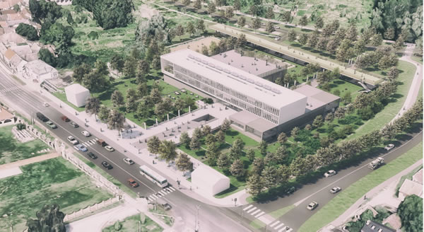 PREDMET NATJEČAJA:izrada idejnog urbanističko-arhitektonskog rješenja nove zgrade I. gimnazije Osijek, s pripadajućom trodijelnom sportskom dvoranom i parternim uređenjem sa sportskim igralištima.