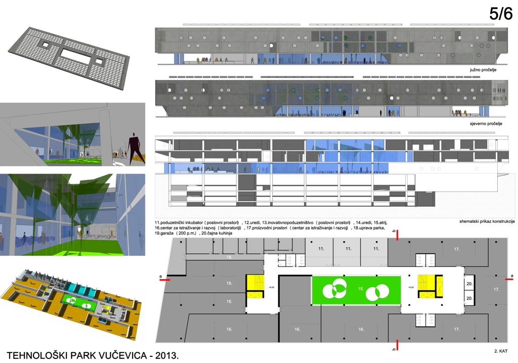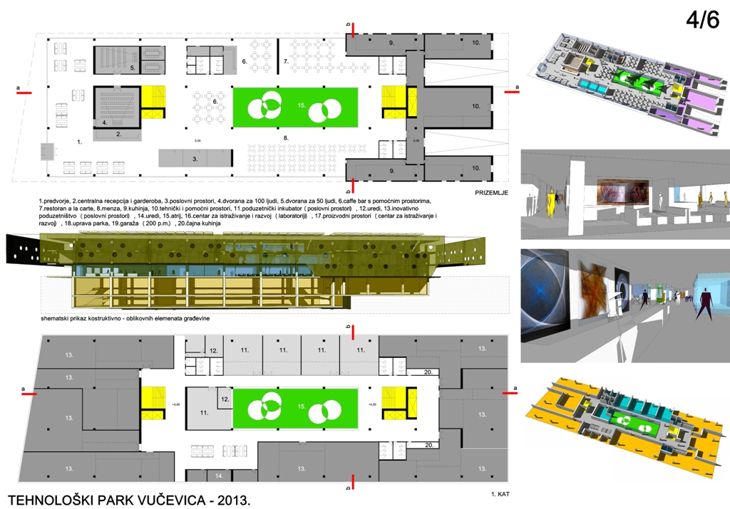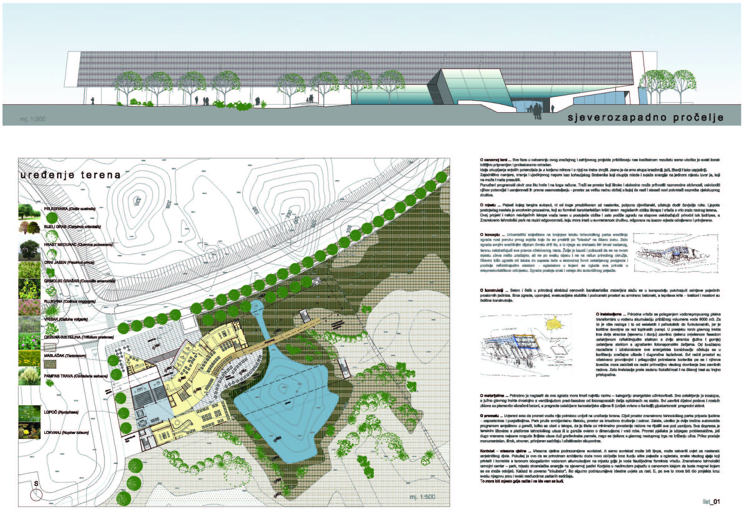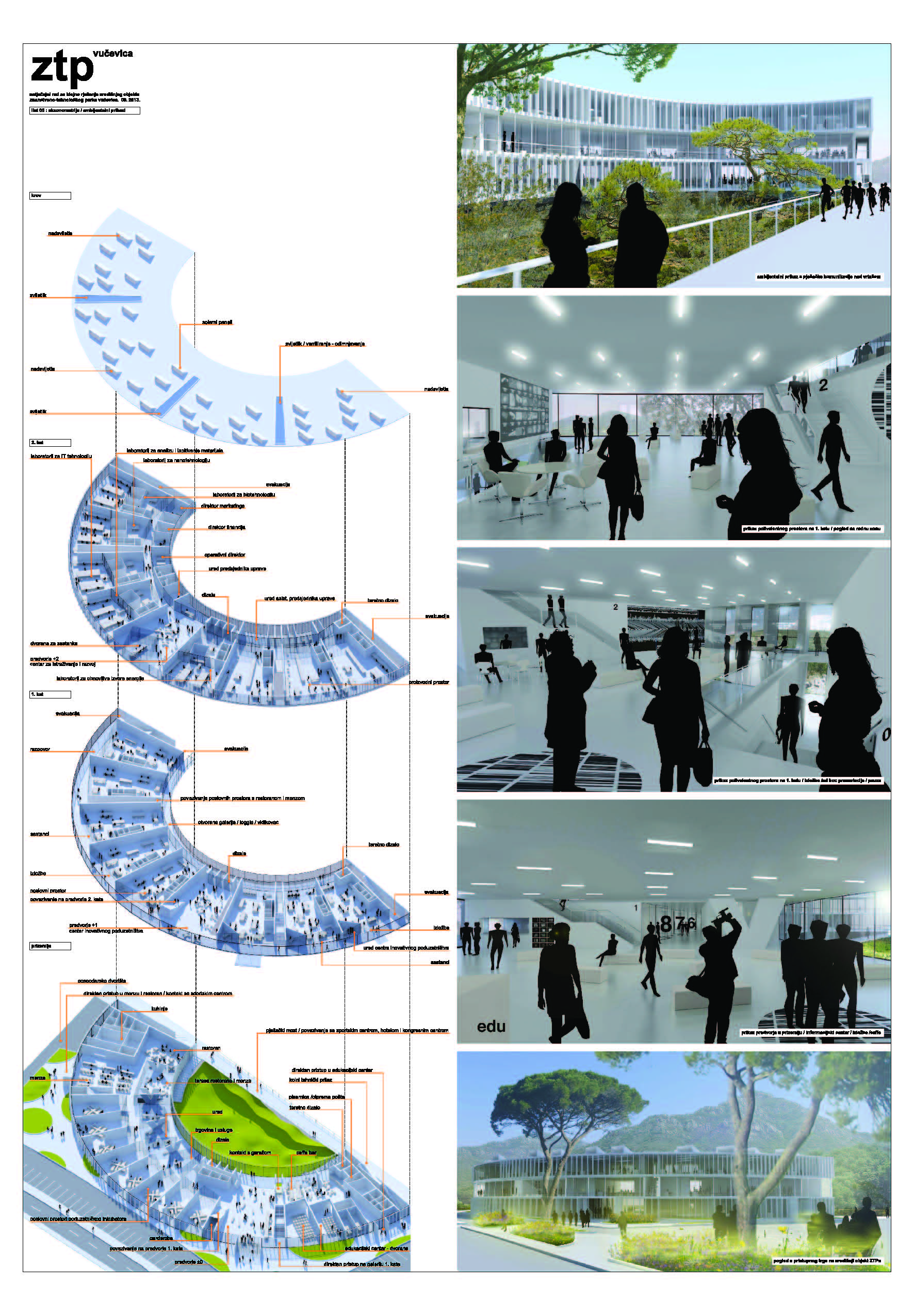 rješenja u inovativnoj tehnologiji i energetskoj održivosti rad je izdvojen i najbolje ocijenjen. U unutarnjoj organizaciji prostora moguće je formirati i središnju komunikacijsku vezu između stubišta tako da se osigura optimalna komunikacija i organizacija sadržaja. Oblikovanje je uspješno i odražava zadanu namjenu.