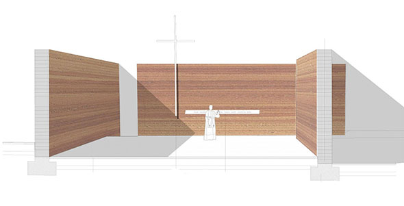 Dio za realizaciju obuhvaća budući centar groblja površine P = 382m2 i pristupni put s juga, kroz postojeće groblje, površine P = 193m2. Budući centar groblja sadrži spomen obilježje i poziciju glavnog križa groblja. Idejnim rješenjem uređuju se parter i krajobraz u kontaktnoj zoni spomen obilježja.