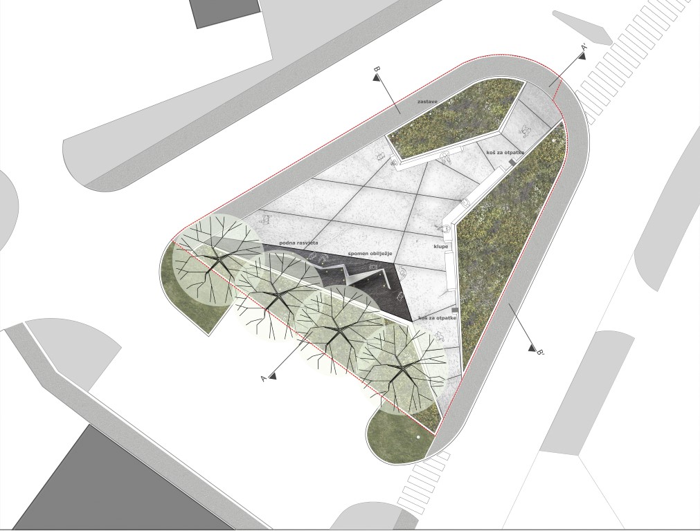 Plakat, Spomen obilježje, Tlocrt, Vizualizacija 1, Vizualizacija 2, Vizualizacija 3, Vizualizacija 4, Vizualizacija 5