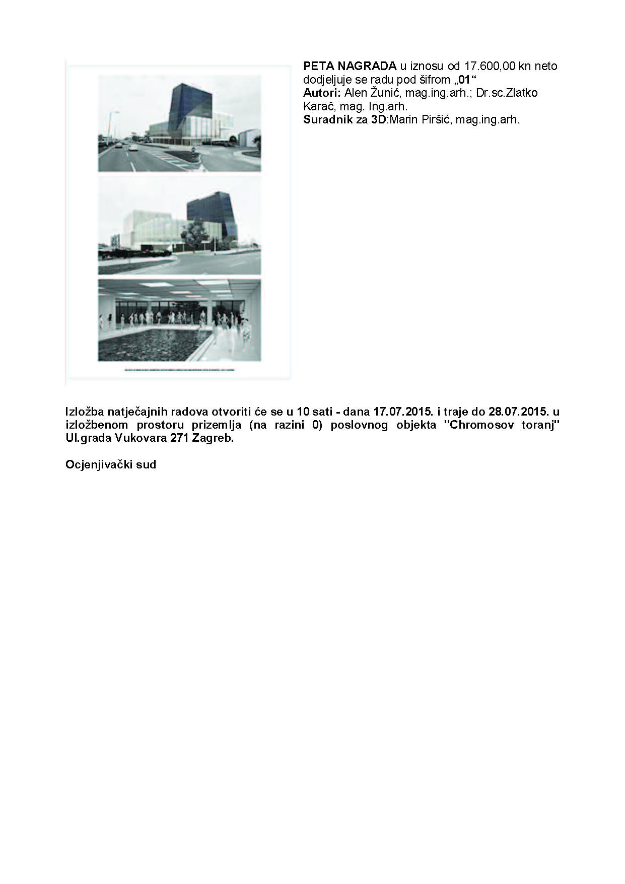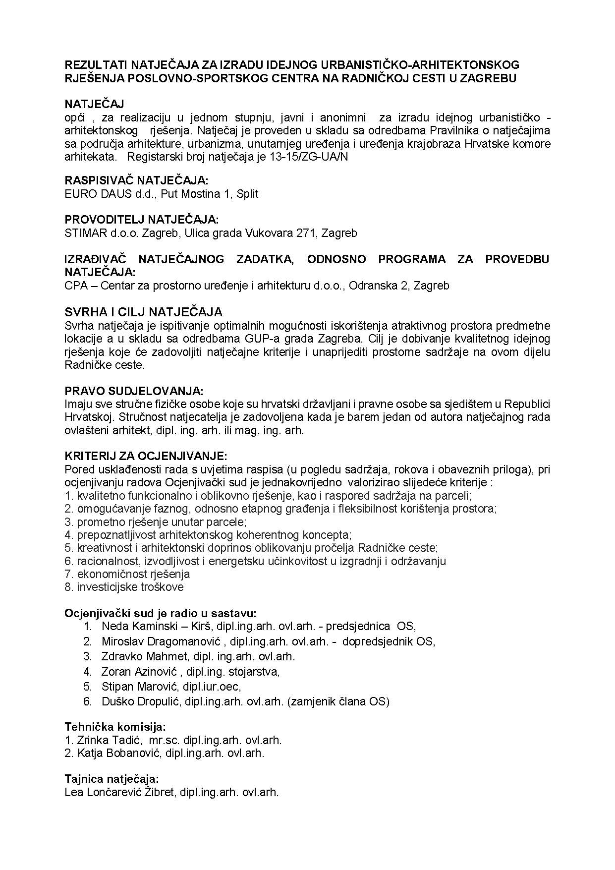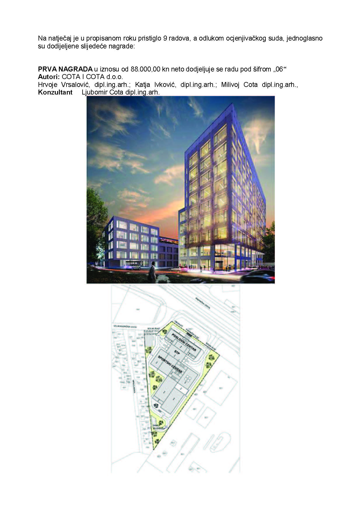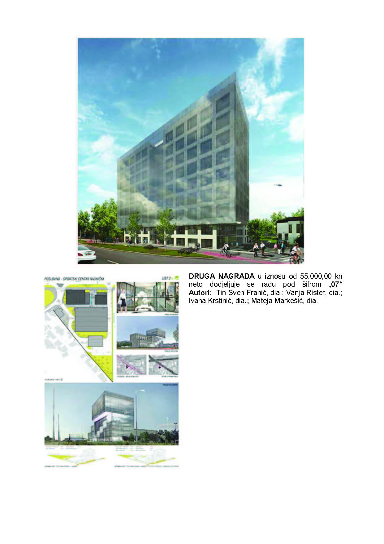Rezultati natječaja za izradu idejnog urbanističko-arhitektonskog rješenja poslovno-sportskog centra na Radničkoj cesti u Zagrebu