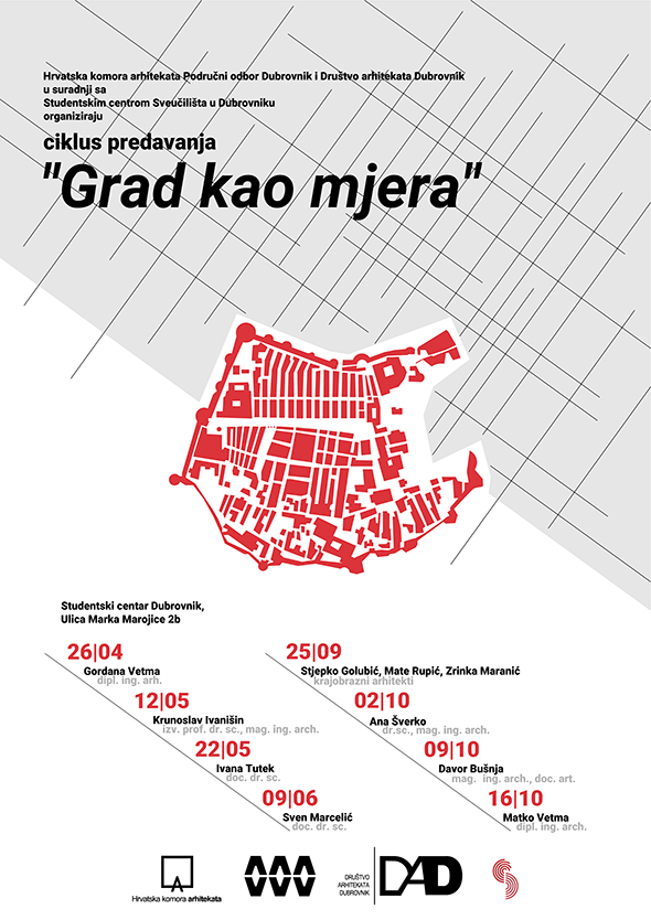Ciklus predavanja „Grad kao mjera“ – Hrvatska komora arhitekata Područni odbor Dubrovnik i Društvo arhitekata Dubrovnik u suradnji sa Studentskim centrom Sveučilišta u Dubrovniku