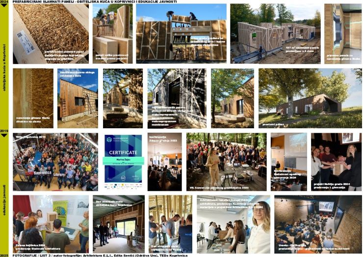 Arhitektica Marina Zajec, osnivačica arhitektonskog ureda E.L.I., istaknula se kao jedna od predvodnika održive arhitekture u Hrvatskoj, integrirajući prirodne materijale poput drva i slame u suvremeni arhitektonski diskurs potičući širu zajednicu na promišljanje o održivosti i ekološkoj odgovornosti u arhitekturi. Njena dugogodišnja praksa odražava sintezu tradicionalnih tehnika i suvremenih potreba za ekološki osviještenom gradnjom. Vlastitu obiteljsku kuću, prvu takve vrste u Hrvatskoj, koristi kao živi laboratorij koji potvrđuje opravdanost ovakvog pristupa gradnji. Sposobnost da slamu uvede u mainstream arhitekturu rezultat je kontinuirane edukacije i demonstracije prednosti ovih materijala u praksi.