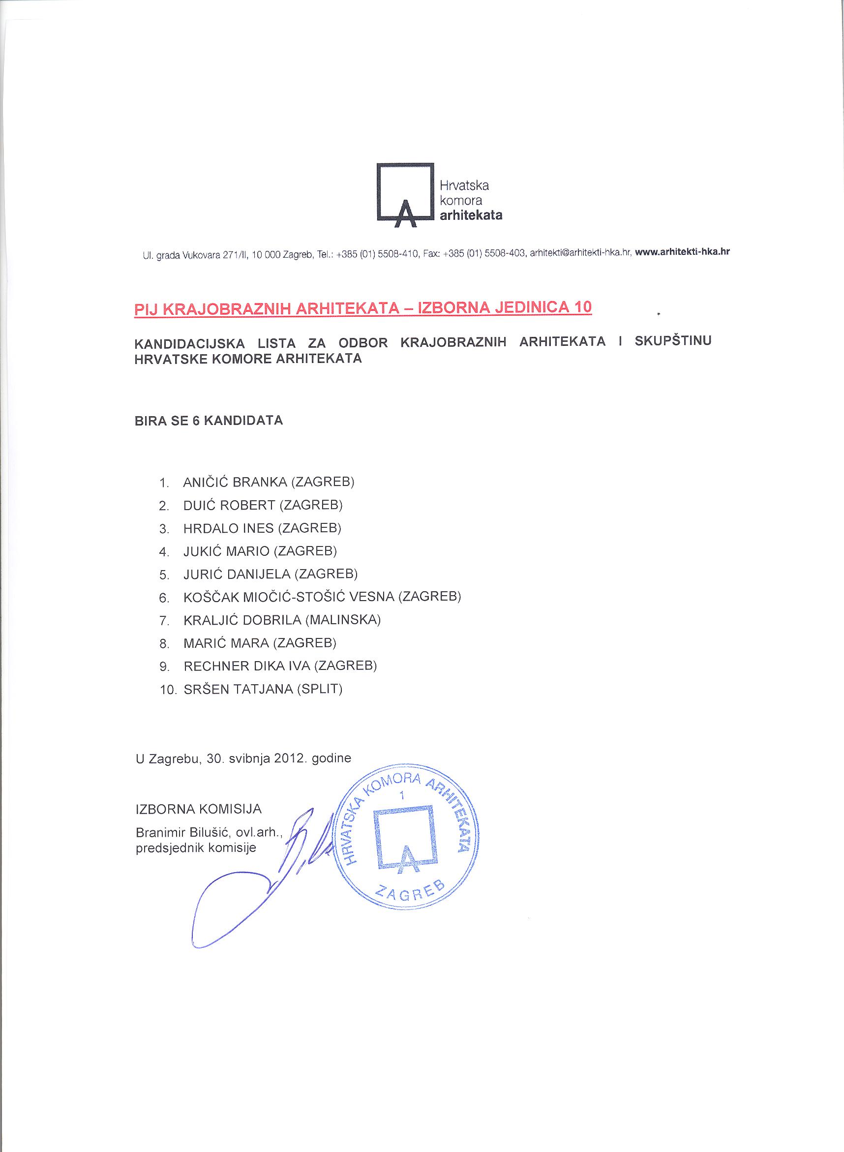 POSEBNA IZBORNA JEDINICA KRAJOBRAZNIH ARHITEKATA - IZBORNA JEDINICA 10