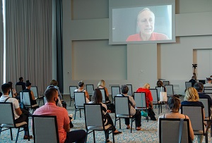 Iva Marčetić iz organizacije Pravo na grad organizacija koja se na različite načine bavi urbanom pravdom u najširem smislu, video linkom predstavila je teze kako pravo na grad uključuje i pravo na stanovanje.
