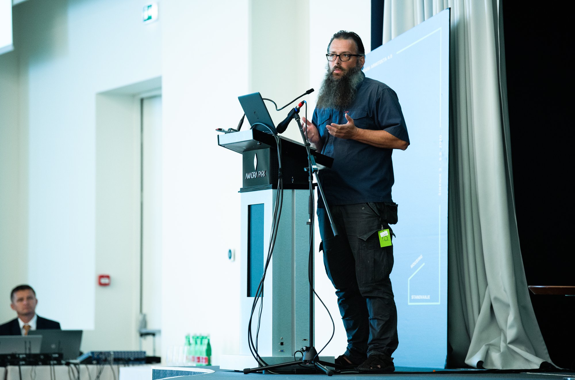 Uvodničar sesije BIM-a, Marin Račić, arhitekt iz ureda MR2 iz Rijeke. HKA nastavlja promovirati napredne BIM tehnologije jer jedino primjenom najnovijih tehnoloških rješenja hrvatski projektanti mogu pratiti svjetske trendove i praksu. Širenje fokusa primjene BIM-a s projektiranja na druge faze u procesu gradnje vidljivo je kroz realizaciju uspješnih projekata u Hrvatskoj. Uloga HKA je osigurati članovima potporu u tim procesima.