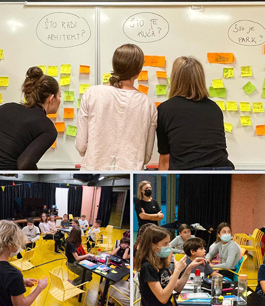S djecom se razgovaralo o pojedinim temeljnim pojmovima iz domene grada i arhitekture, izvlačili su se listići s pitanjima, a djeca su, crtežom i opisno, tumačila što njima znače pojedini pojmovi, tumačilo im se što je to grad, što čini grad, koji su osnovni elementi grada i kakve tipove gradova poznajemo uz to pokazivane su zračne snimke raznih europskih i izvaneuropskih gradova, a na planu grada Rijeke prepoznavali su se dijelovi grada te razlikovale zgrade od trgova.