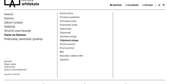 Web stranice HKA - što možete pronaći? - Vrijednost usluga i Kalkulator arhitektonskih i inženjerskih usluga