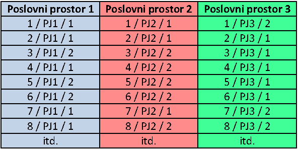 Primjer 1 Slijed računa po svakom poslovnom prostoru