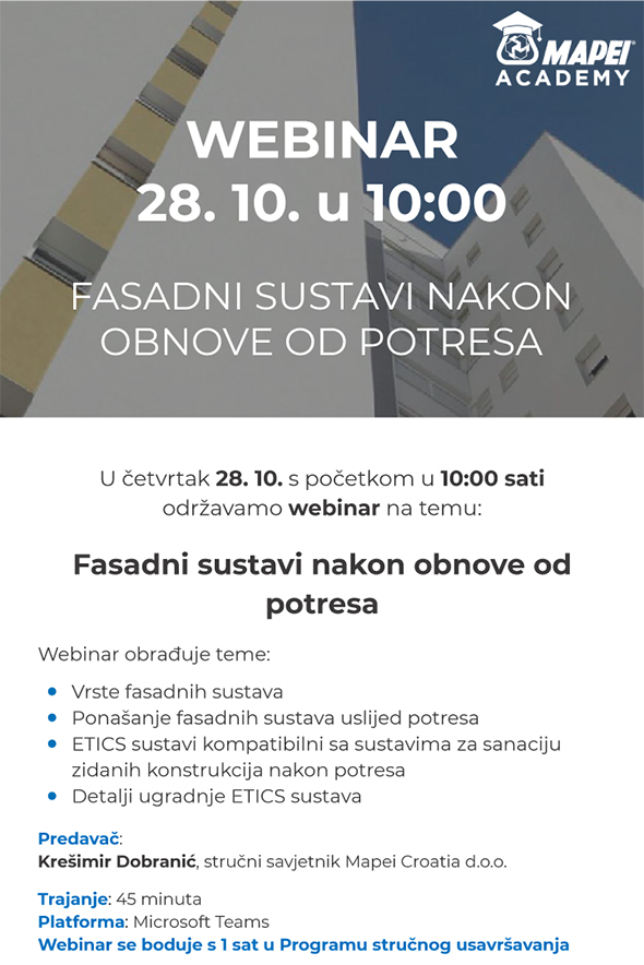 Fasadni sustavi nakon obnove od potresa - MAPEI webinar / 28.10.2021. u 10 sati