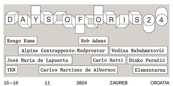 Međunarodni arhitektonski festival Dani Orisa 24 održat će se 15. i 16. studenoga 2024. godine u Koncertnoj dvorani Vatroslava Lisinskog u Zagrebu.