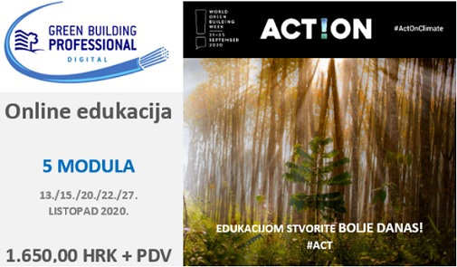 Pozivamo Vas da se pridružite GBPRO DIGITAL online edukaciji o zelenoj gradnji koja se održava u listopadu 2020. godine, kroz 5 modula putem ZOOM platforme!