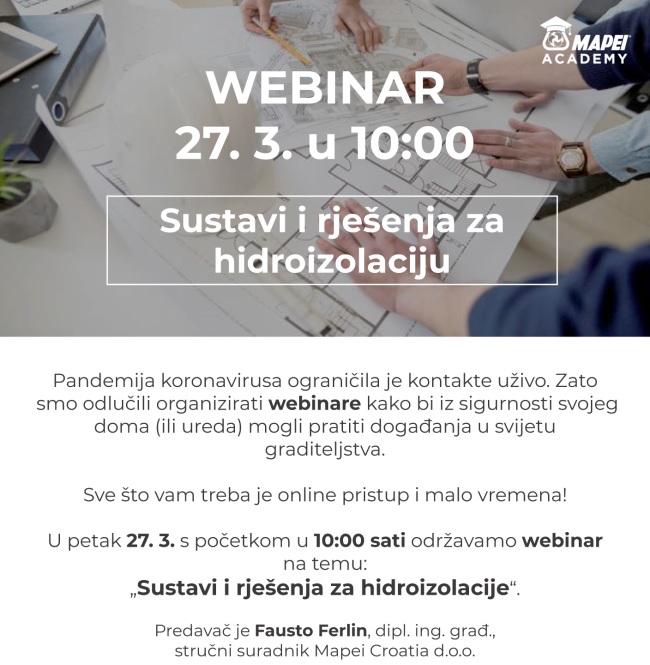najavljuje webinar tvrtke Mapei Sustavi i rješenja za hidroizolaciju.