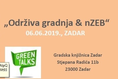 Najavljujemo Green Talks u Zadru u četvrtak, 6.6.2019. od 11,00 do 15,00 sati.