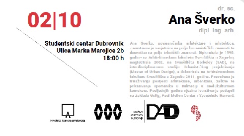Hrvatska komora arhitekata – Područni odbor Dubrovnik, Društvo arhitekata Dubrovnika i Studentski centar Sveučilišta u Dubrovnika pozivaju Vas na 6. predavanje u ciklusu „Grad kao mjera“ pod nazivom: