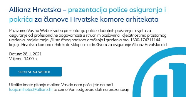 Hrvatska komora arhitekata u suradnji s Allianz Hrvatska u sklopu Programa stručnog usavršavanja