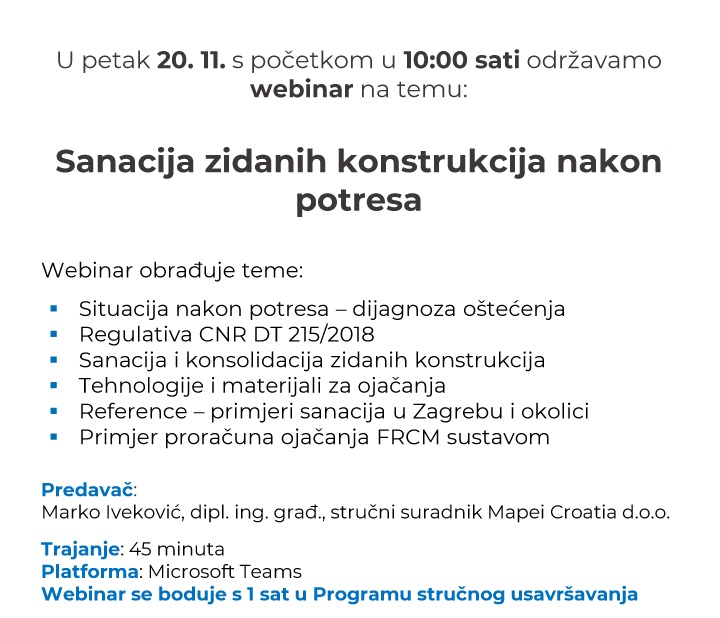 Sanacija zidanih konstrukcija nakon potresa - Mapei webinar