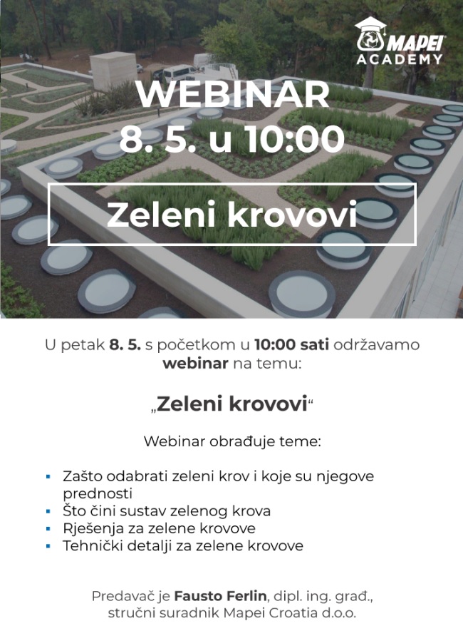 najavljuje webinar tvrtke Mapei Zeleni krovovi
